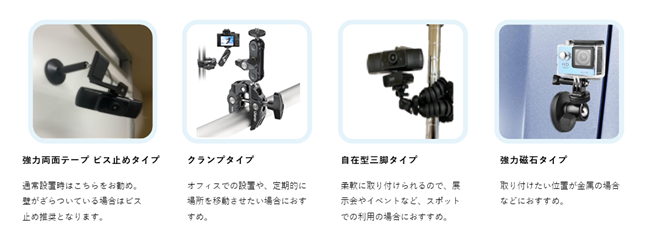 電源さえご用意いただければ、大掛かりな工事も要らず、その場ですぐにご利用いただけます。両面テープやクランプ、強力磁石など設置環境に合わせて簡単に設置頂けます。