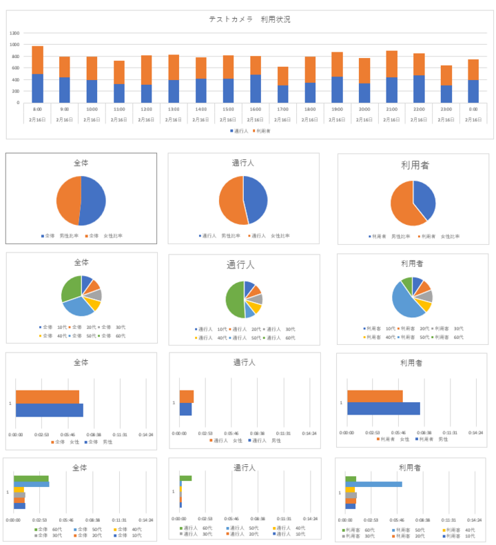 性別・年齢の判定機能に加えて、あらかじめ設定したエリアによる利用客判定や、滞在時間測定機能も追加し、より高度分析データを確認することが可能となります。